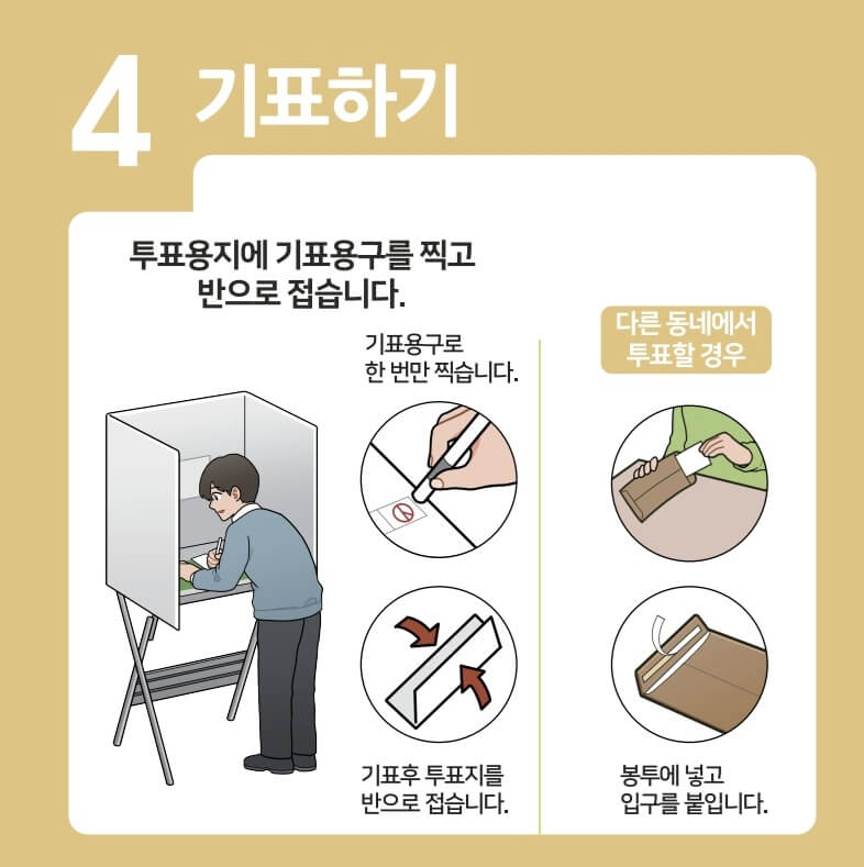 - 장소: 주소지 관할 지정 투표소 (※ 본투표는 정해진 곳에서만 가능)